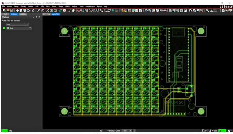 設(shè)計(jì)完成后,我們將其保存為板文件,并將所有100個(gè)led放在10x10的行和列網(wǎng)格中。