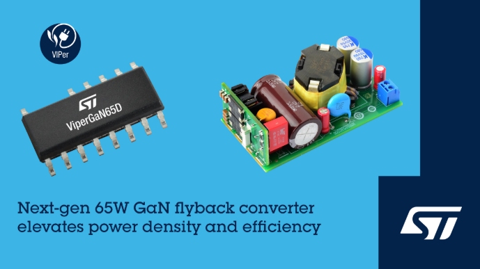 意法半導(dǎo)體65W GaN變換器為注重成本的應(yīng)用提供節(jié)省空間的電源方案