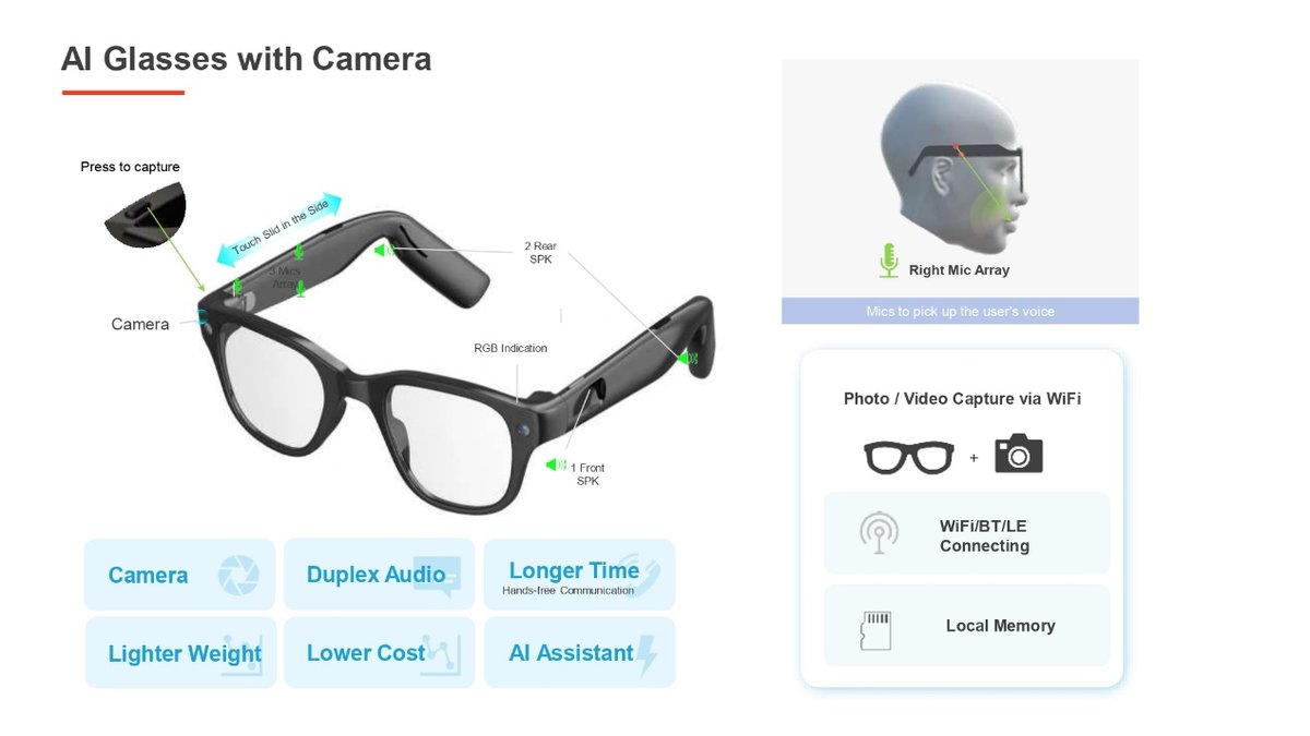 在音頻功能方面,G70除了具備傳統(tǒng)音樂播放和通話功能外,還新增了雙向收發(fā)音功能。借助先進(jìn)的 MIC 矩陣實現(xiàn)雙向收音,再加上雙向喇叭進(jìn)行雙向發(fā)音,這一創(chuàng)新設(shè)計使得一副眼鏡就能夠支持雙向翻譯。無論是在國際旅行還是跨國商務(wù)交流中,這一功能都能為用戶帶來極大的便利,打破語言的壁壘,讓溝通變得更加順暢。