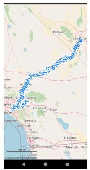 我用一部沒(méi)有SIM卡的安卓手機(jī)追蹤了一次從拉斯維加斯到奧蘭治縣的旅行。下面是一些圖片。該應(yīng)用程序允許您調(diào)整頻率的信號(hào)和坐標(biāo)歷史可以下載為CSV文件作進(jìn)一步分析。溫度目前被啟用為可記錄的度量,有時(shí)“勒克斯”級(jí)別可用。
