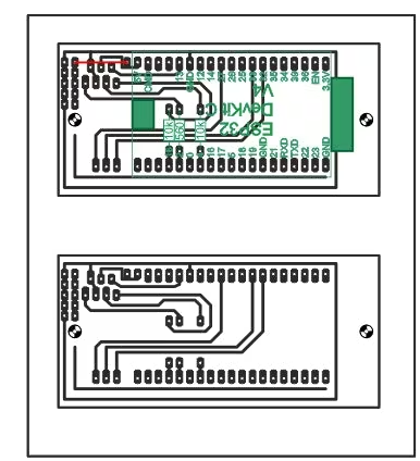 對于使用的控制器板ESP32 Dev Kit C V4,需要兩個面包板來開發(fā)電路,它們通過電流軌放在一起。這是為跳線獲得足夠自由接觸點(diǎn)的唯一方法。