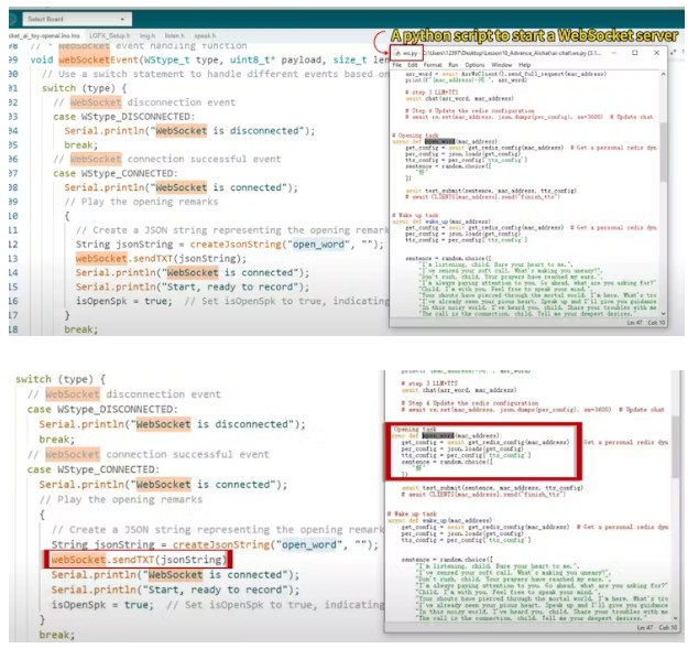 ●板控制揚聲器和麥克風的文本數(shù)據(jù)和播放音頻的二進制數(shù)據(jù),處理它使用asr.py(語音到文本)。還要更新API密鑰、URL和該文件中所需的其他內容。
