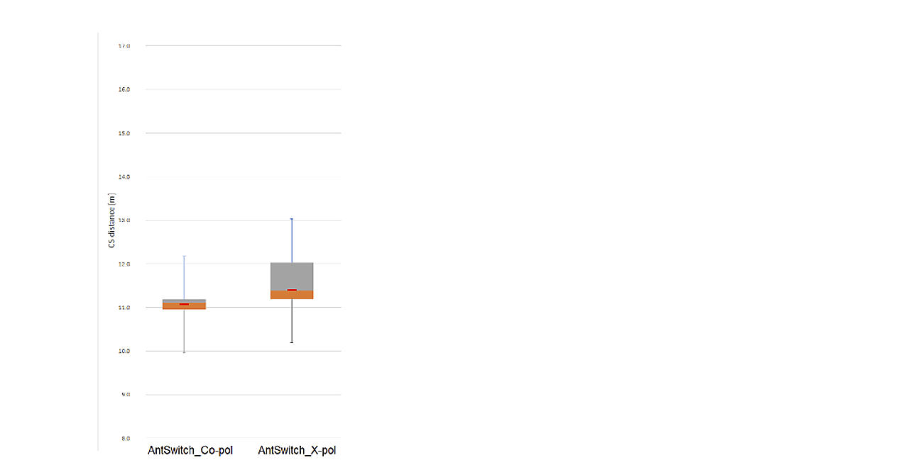 在這項測試中,交叉極化天線表現(xiàn)出了最佳效果,測量誤差通常在+/-2米以內(nèi)。同極化天線的表現(xiàn)更差,大多數(shù)結(jié)果顯示誤差在+/-3米或更大。