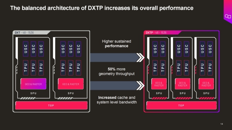 Imagination正在幫助客戶導(dǎo)入更加靈活的架構(gòu)。以該公司不久前發(fā)布的Imagination DXTP GPU IP為例,它采用了先進(jìn)的平衡架構(gòu),增加了緩存和系統(tǒng)級(jí)帶寬,實(shí)現(xiàn)了更高的持續(xù)性能,幾何吞吐量提高50%,不僅能夠輕松同時(shí)處理圖形和計(jì)算任務(wù),而且其功率效率還較其前序產(chǎn)品提升了20%,為邊緣AI提供了理想的GPU平臺(tái)。DXTP GPU已經(jīng)被全球知名科技公司采用,用于對(duì)AI 多數(shù)據(jù)類型處理、計(jì)算任務(wù)加速和本地內(nèi)存的支持。