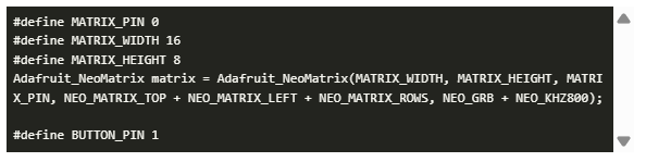我們使用Adafruit_NeoMatrix.h庫(kù)來控制16x8 WS2812B LED矩陣。這個(gè)庫(kù)幫助我們繪制像素、形狀和動(dòng)畫。