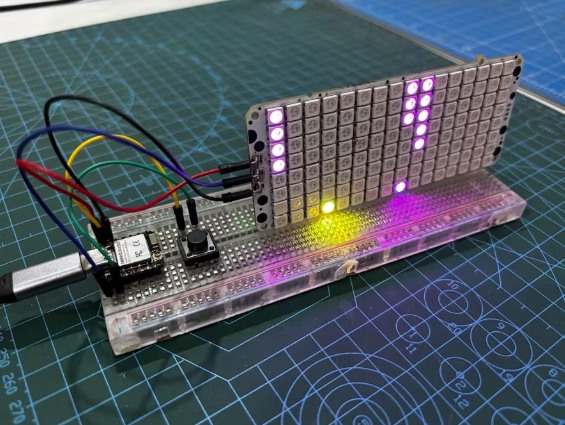 這是這個(gè)小構(gòu)建的最終結(jié)果:在基于esp32的開發(fā)板上使用自定義矩陣面板運(yùn)行一個(gè)類似《Flappy bird》的游戲。