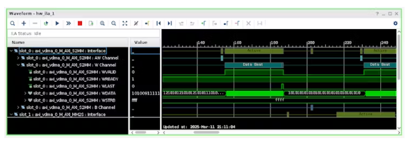 此外,由于該塊包括一個內(nèi)部FIFO,我們可以通過ILA觀察其溢出和下流狀態(tài)信號。這些信號在診斷性能問題(如數(shù)據(jù)饑餓或管道中的反壓)時特別有價值,并有助于指導(dǎo)內(nèi)存帶寬或緩沖策略的改進(jìn)。