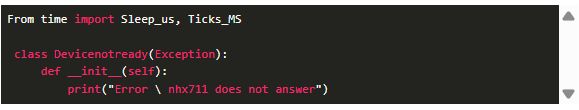 異常類處理HX711不可訪問的情況。接下來是HX711類的聲明,Devicenotready繼承了HX711類。拋出異常后,將生成一個(gè)實(shí)例,構(gòu)造函數(shù)確保輸出錯(cuò)誤消息。