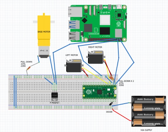 ?Pi 5(用于手勢(shì)檢測(cè))和Pico(用于實(shí)時(shí)電機(jī)控制)之間的這種分工確保了系統(tǒng)以最小的延遲高效運(yùn)行。