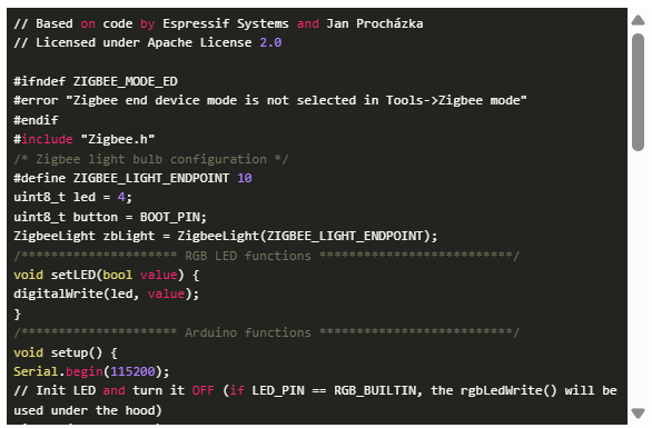 這段代碼可以找到導(dǎo)航到文件>示例> Zigbee > Zigbee_On_Off_Light