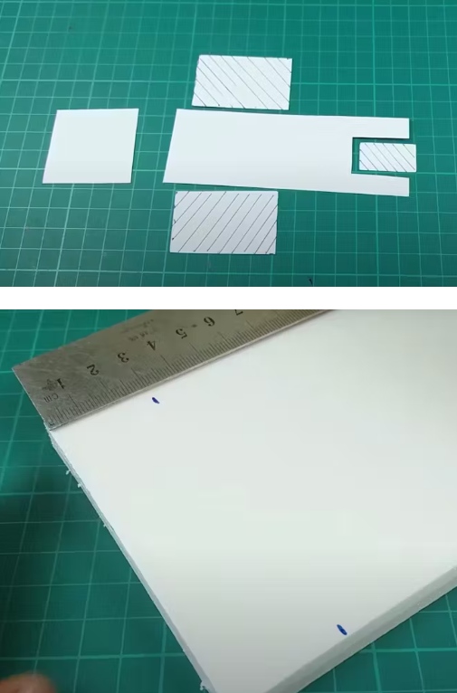 其次,按照下面的尺寸剪下一塊泡沫板。