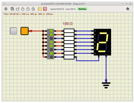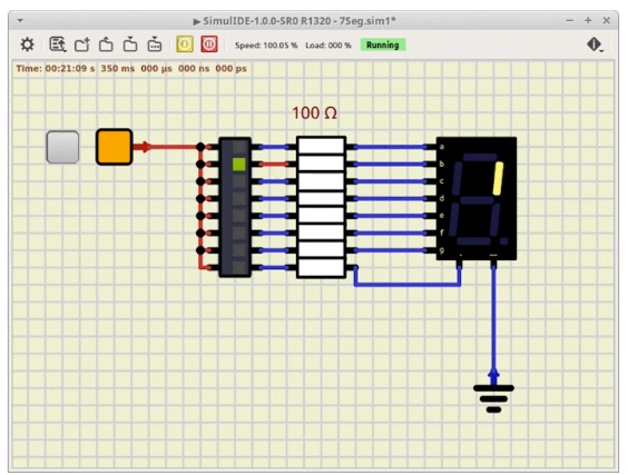在面包板上構(gòu)建該電路或使用模擬器軟件。紅色表示5v,藍(lán)色表示0v。在實(shí)際電路中,我們會使用示波器或電壓表。