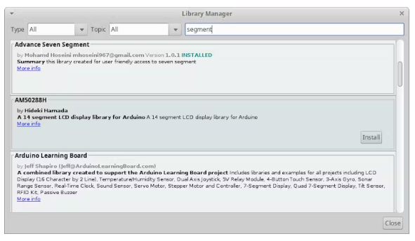 更新您的Arduino代碼庫并搜索Advance Seven Segment。有很多為這些顯示器編寫的軟件庫。這個(gè)很小。