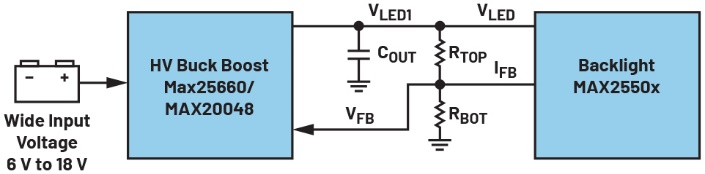 圖7.MAX2550x與MAX25660/MAX20048的反饋控制配置。