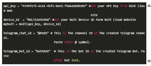 在我們開始之前我們得先安裝好波特的硬件。這很容易做到,只要在你的手機上安裝螺栓應用程序并輸入你的Wi-Fi憑據(jù),這樣你的螺栓就可以連接到你的Wi-Fi,從而連接到互聯(lián)網(wǎng)。然后你可以訪問云頁面,從那里獲得你的設備ID和API密鑰,一切都好了。您可以訪問BoltIOT文檔以了解更多有關它的信息。