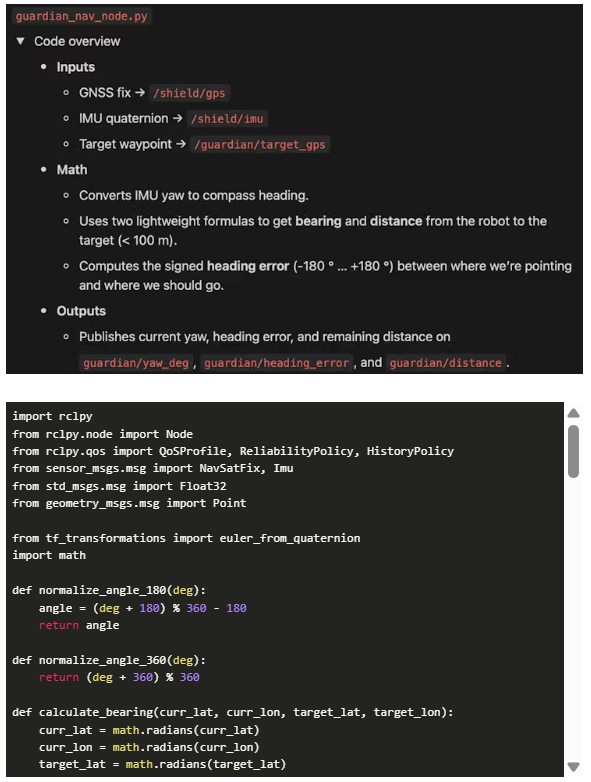?Guardian導(dǎo)航節(jié)點(diǎn),接收來(lái)自GNSS/IMU的傳感器數(shù)據(jù),通過(guò)比較目標(biāo)航路點(diǎn)來(lái)執(zhí)行導(dǎo)航校正