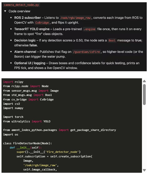 ?攝像頭(Oak-D Pro W),通過(guò)ROS 2中間件發(fā)送RGB圖像,用于火災(zāi)探測(cè)