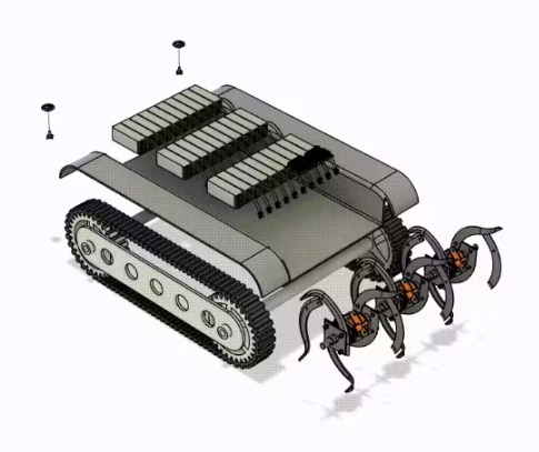 我最初計(jì)劃從頭開(kāi)始3d打印整個(gè)履帶式底盤(pán)。后來(lái),一位朋友給了我一套他不再需要的備用曲目,于是我抓住了它,節(jié)省了幾周的工作。動(dòng)力傳動(dòng)系統(tǒng)安裝完畢后,我所要設(shè)計(jì)的就是一個(gè)堅(jiān)固的3d打印平臺(tái),電子設(shè)備和車載電腦可以整齊地固定在上面。(如果你感興趣的話,我之前發(fā)現(xiàn)了一些3D打印的:3D打印機(jī)器人坦克底盤(pán),GrabCAD的3D打印坦克底盤(pán))