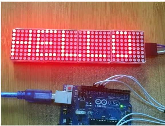 要顯示的文本存儲(chǔ)在微控制器中,并使用MD_MAX72XX和Parola等庫(kù)來(lái)管理矩陣顯示和處理滾動(dòng)效果。
