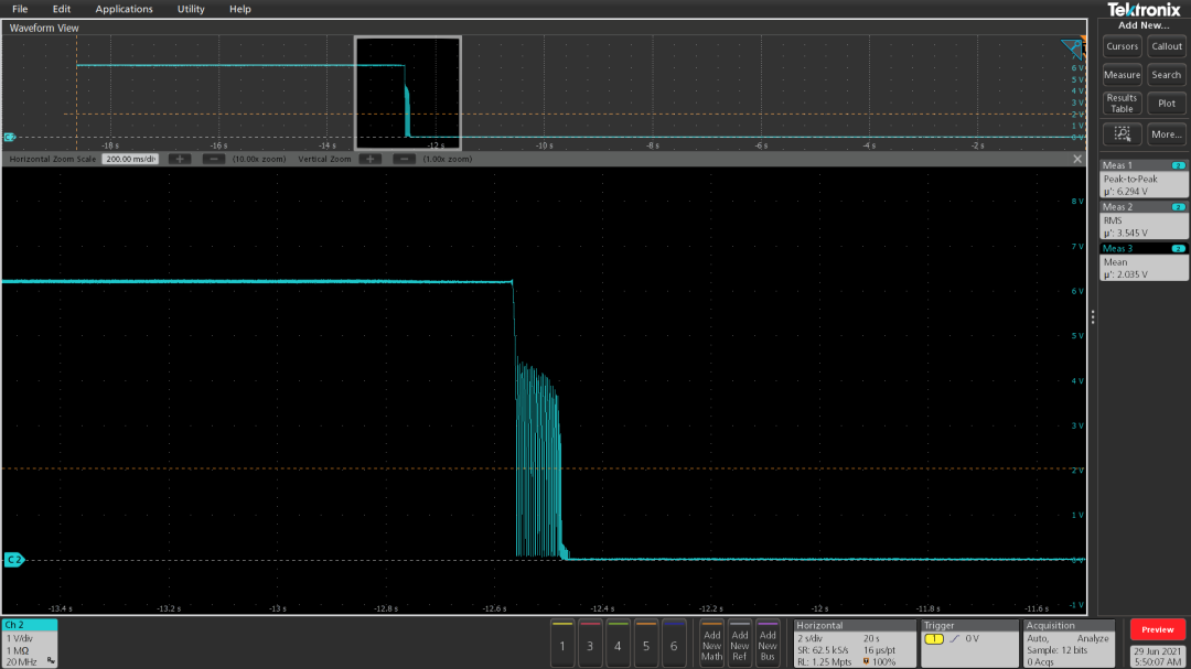 從分析過程中我們可以看的出來,震蕩問題的關(guān)鍵在于電源芯片在帶載模式下,當(dāng)輸入撤掉后,使能引腳未能及時(shí)的失能。因此,針對此問題的整改,在后面要求軟件工程師在檢測到系統(tǒng)掉電后立即關(guān)掉所有輸出。
