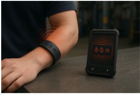 專為聽障用戶設(shè)計,這款手環(huán)整合了火焰、氣體、人體紅外(PIR)與濕度傳感器,可實時感知環(huán)境風(fēng)險。通過分級震動模式傳遞不同緊急程度的警報,讓用戶無需依賴聲音即可感知危險。另設(shè)獨立控制面板,周圍聽力正常的人員可發(fā)送固定觸覺信號,實現(xiàn)雙向靜音通信,適用于家庭、學(xué)校以及工作等場景。