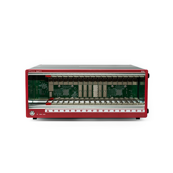QL6711是一款基于PXIe架構(gòu)的18槽機(jī)箱,可選擇不同控制器以實(shí)現(xiàn)不同的接口需求。機(jī)箱背板提供高速總線交換網(wǎng)絡(luò),最高支持24GB/s系統(tǒng)帶寬,單槽最高支持8GB/s獨(dú)立帶寬,同時(shí)具有10MHz參考時(shí)鐘輸入/輸出接口(BNC接口)、風(fēng)扇轉(zhuǎn)速檔位開關(guān)等部件,適用于各類測控系統(tǒng)。