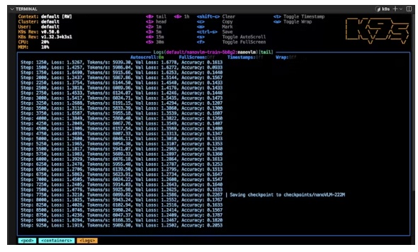 這種特殊的訓(xùn)練持續(xù)了大約1天20小時(shí),完成了5個(gè)階段。MMStar的精度為0.1013。這不是為了達(dá)到最好的模型精度,而是為了驗(yàn)證Nvidia Jetson Orin Dev Kit可以使用Kubernetes設(shè)置處理訓(xùn)練過(guò)程的計(jì)算需求。