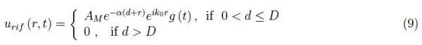 關于聲納發(fā)射的波的傳播,最大距離D使得AMexp(?αD)是可以反射的最小振幅。簡而言之,當d>D時,波會受到衰減以致不會被反射: