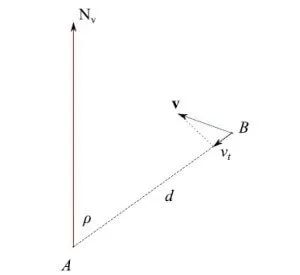 發(fā)射器天線具有高度指向性:為了實現(xiàn)360°全景覆蓋,天線需繞垂直軸均勻旋轉。這樣,就可以通過測量正北方向與回波信號傳播方向的夾角ρ來確定目標回波的方向。在航海學中,ρ稱為極方位,根據(jù)目標位置以順時針(+)或逆時針(-)方向從0°到180°以六十進制進行測量(圖1)。通過測量(ρ,d),我們可以獲得給定時刻B的位置。如果快速連續(xù)重復這些測量,艦載計算機將確定B相對于A的相對速度。