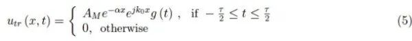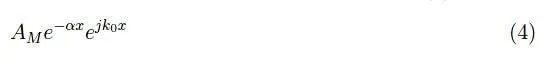 其中AM>0是(恒定)振幅。在存在由水吸收產(chǎn)生的衰減的情況下,振幅在傳播過程中趨于減小。我們考慮一個由參數(shù)α>0控制的指數(shù)衰減,將其稱為衰減系數(shù),方程(3)變?yōu)椋?/span>