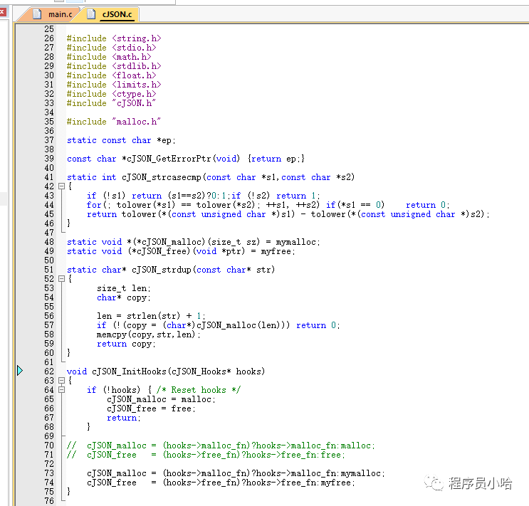 我們把原本的cJSON中的malloc 和free替換成我們自己的,如下代碼: