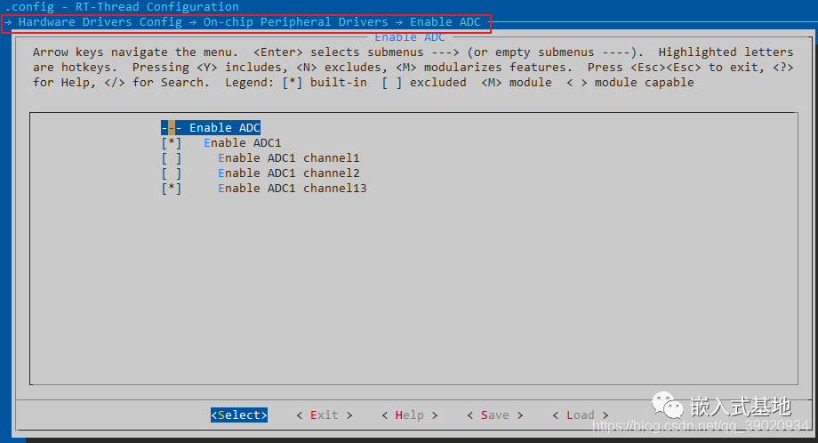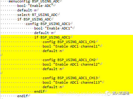 在menu "On-chip Peripheral Drivers"中的menuconfig BSP_USING_ADC下添加如下內(nèi)容