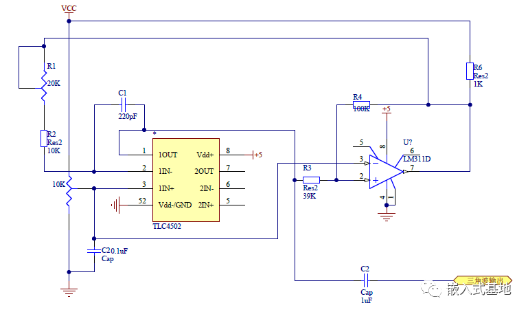 TLC4502不僅具有較寬的頻帶,而且可以在較低的電壓下滿幅輸出,既保證能產(chǎn)生線性良好的三角波,而且可以達到在低電壓下正常工作的要求。