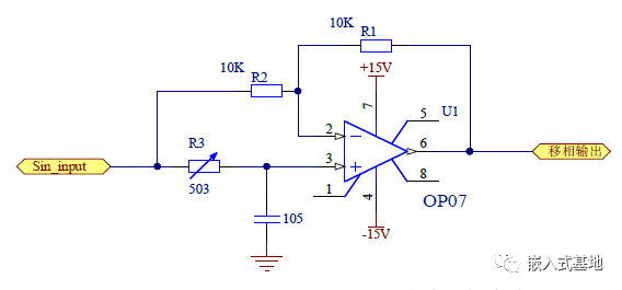 一般的RC 移相電路都會對幅值有一定的衰減,這個電路就可以等幅輸出移相后的波形。