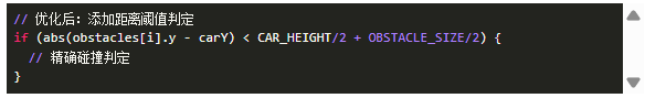 UI組件:實(shí)時(shí)顯示分?jǐn)?shù)、速度、車(chē)道和障礙間隔(見(jiàn)drawGame()函數(shù))