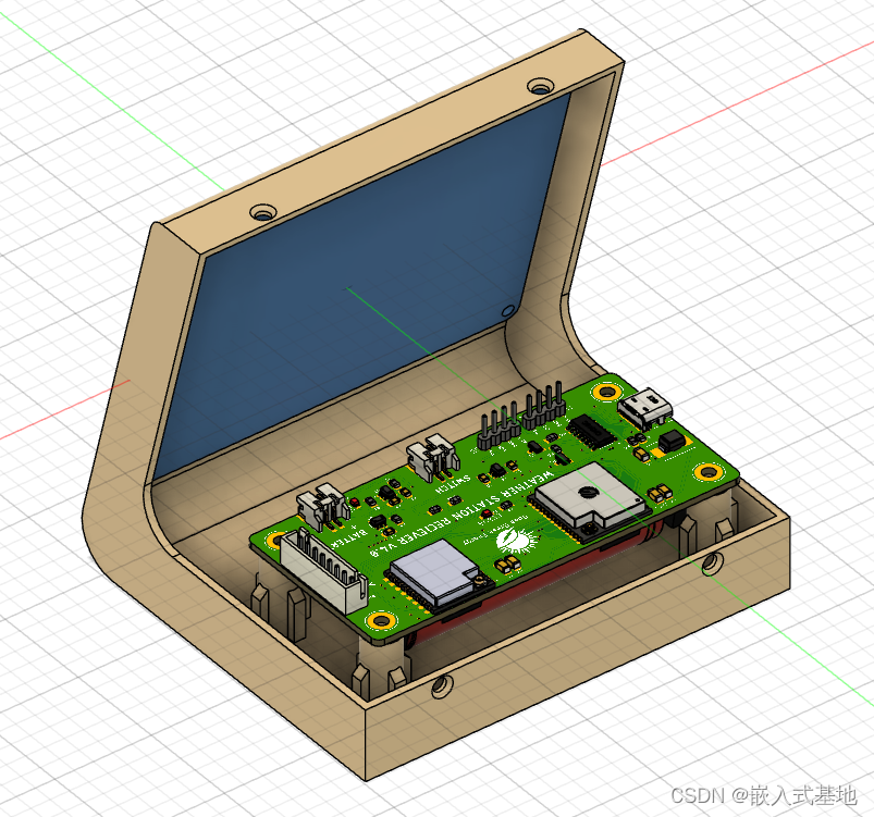 本項目設(shè)計了一個3D打印的百葉箱來保存氣象傳感器和PCB板。