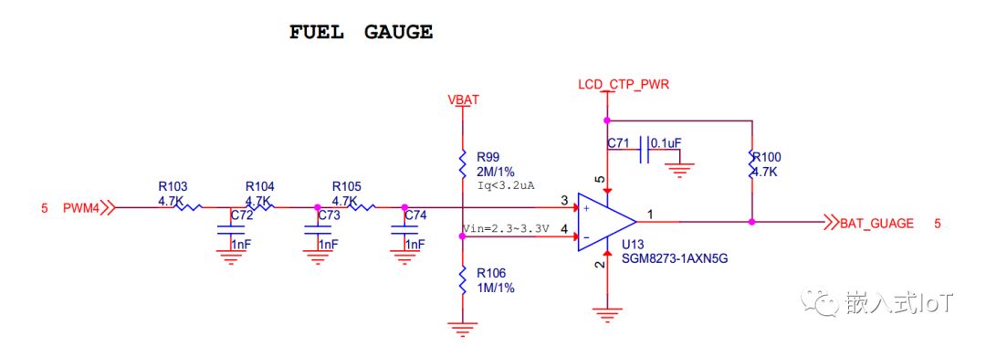 然后在比較器輸出引腳,可以將該引腳設置成一個中斷,當中斷發(fā)生時,功放的電平發(fā)生翻轉。通過得到當前的PWM占空比,從而計算出此時電池的電量。