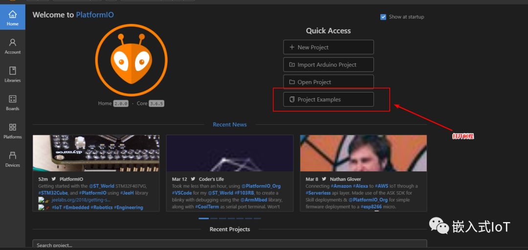 講了這么多到底怎么使用呢?還是在PlatformIO上做開(kāi)發(fā)工作,因?yàn)锳rduino服務(wù)器在亞馬遜上,有些東西下載很慢,而且需要翻墻,所以直接放棄。