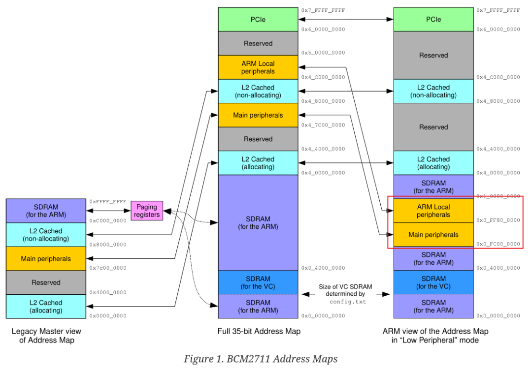 在寫外設(shè)的驅(qū)動程序之前,首先需要查看芯片的Peripherals manual。這里查看rpi_DATA_2711_1p0.pdf即可。根據(jù)外設(shè)空間分布的地址,可以查看如下: