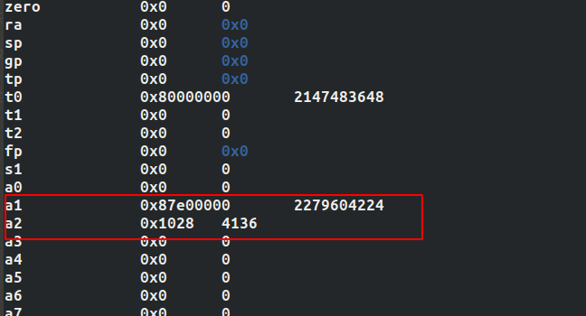 按照riscv的寄存器使用規(guī)則,a0-a7都是用于存放C語言函數(shù)參數(shù)的,下次執(zhí)行c語言參數(shù)就清除掉了,所以需要把設(shè)備樹從定位,從而讓uboot也知道。