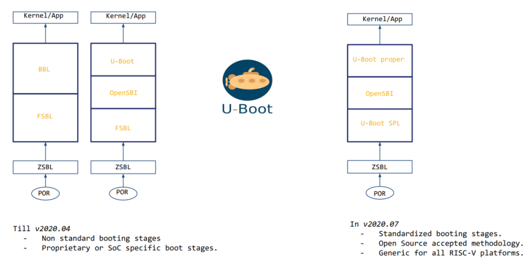 以往芯片廠家都會按照自己的啟動規(guī)則定義一些啟動的流程,比如有些需要SPL+UBOOT,有些可以是直接從SPI或SD卡中boot,這些啟動的規(guī)則很多,每當(dāng)使用一款芯片,都需要去理解其啟動的流程,十分的復(fù)雜。于是就出現(xiàn)了一些規(guī)則和定義。