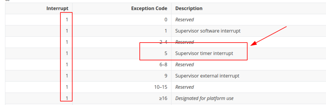 最高位是8,相應(yīng)的中斷描述為Supervisor timer interrupt。
