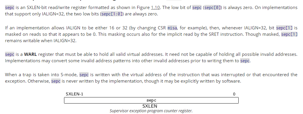 | sepc | 0x0141 | supervisor | Supervisor Exception Program Counter |