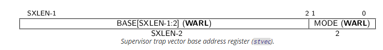 | stvec | 0x0105 | supervisor | Supervisor Trap Vector Base Address |