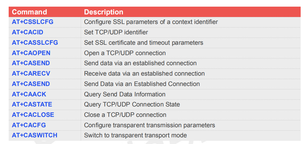 按照模塊的使用方式,與TCP相關(guān)的AT列表可以分為: