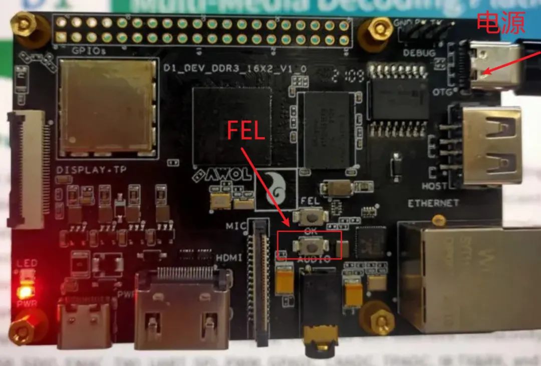 在生成的固件中,每個(gè)固件分別表示從哪種介質(zhì)中啟動(dòng)下一階段。前面說(shuō)過(guò),spl的頭部存放了一些初始化的參數(shù)變量,所以我直接通過(guò)一個(gè)腳本make_download.sh將spl的頭部一些信息替換了。這樣下來(lái),就能夠正常的啟動(dòng)spl階段了,并且可以正常的初始化DDR。按下開發(fā)板的FEL鍵并且上電。