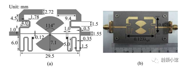 在2017年,Zhang Runqi等人利用縮放線替代傳統(tǒng)的寬帶枝節(jié)型濾波器的傳輸線,不但實(shí)現(xiàn)了寬阻帶的響應(yīng),同時(shí)還將傳統(tǒng)的結(jié)構(gòu)小型化。但這種技術(shù)在個(gè)別頻率點(diǎn)處有輻射現(xiàn)象。
