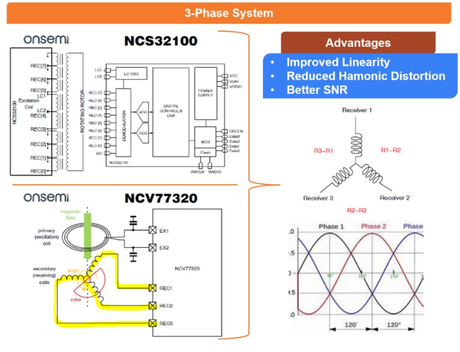 在嚴(yán)苛的線控系統(tǒng)中,電感式位置傳感器憑借電磁感應(yīng)原理構(gòu)建核心優(yōu)勢(shì):通過(guò)定子與轉(zhuǎn)子的印刷電感結(jié)構(gòu)實(shí)現(xiàn)非接觸式位置測(cè)量,為系統(tǒng)提供高精度、高可靠性的位置與速度反饋。其無(wú)接觸設(shè)計(jì)顯著減少傳統(tǒng)編碼器的組件數(shù)量,提升集成度與抗干擾能力,尤其適用于線控轉(zhuǎn)向、線控制動(dòng)及電機(jī)伺服控制等極端工況。安森美基于非接觸式電感位置傳感器的技術(shù)突破,通過(guò)高精度檢測(cè)與抗磁干擾特性,實(shí)現(xiàn)了汽車線控系統(tǒng)的功能創(chuàng)新。