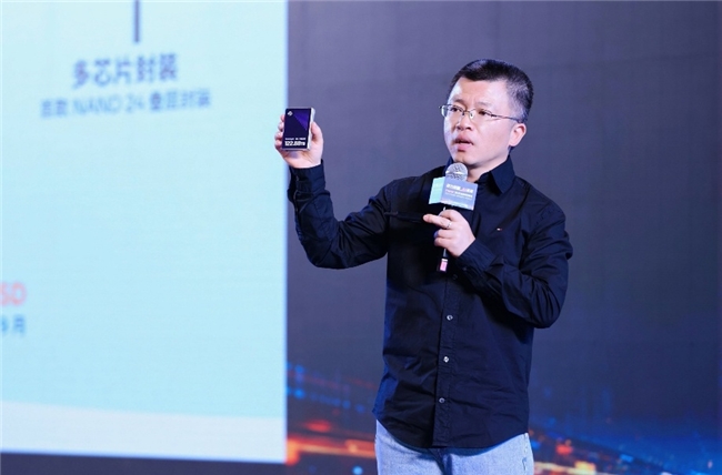 Solidigm亞太區(qū)銷售副總裁倪錦峰向現(xiàn)場觀眾展示Solidigm122TBD5-P5336SSD