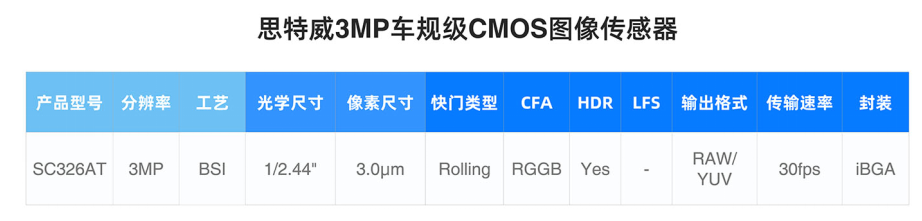 思特威推出3MP車規(guī)級CMOS圖像傳感器新品SC326AT